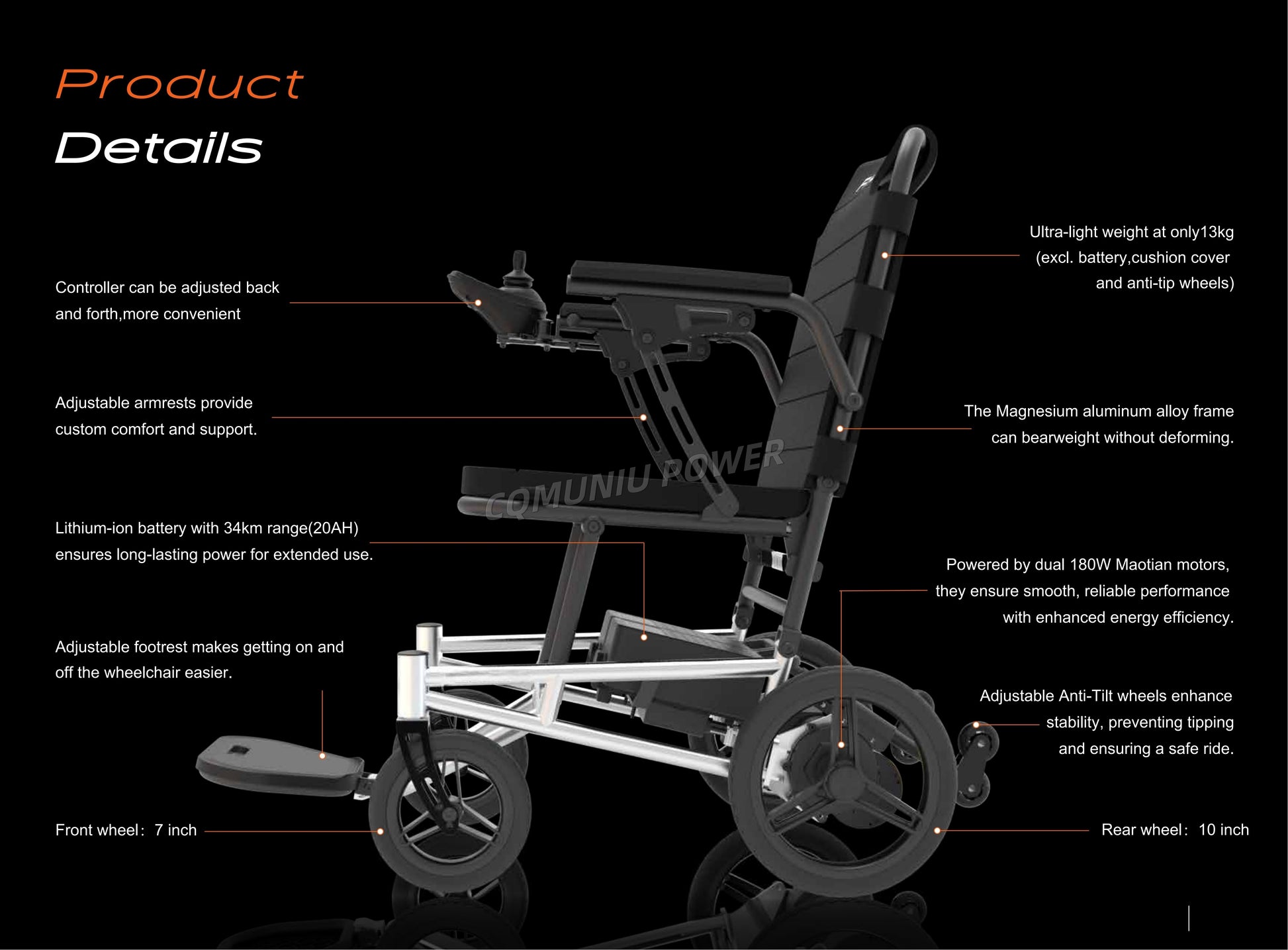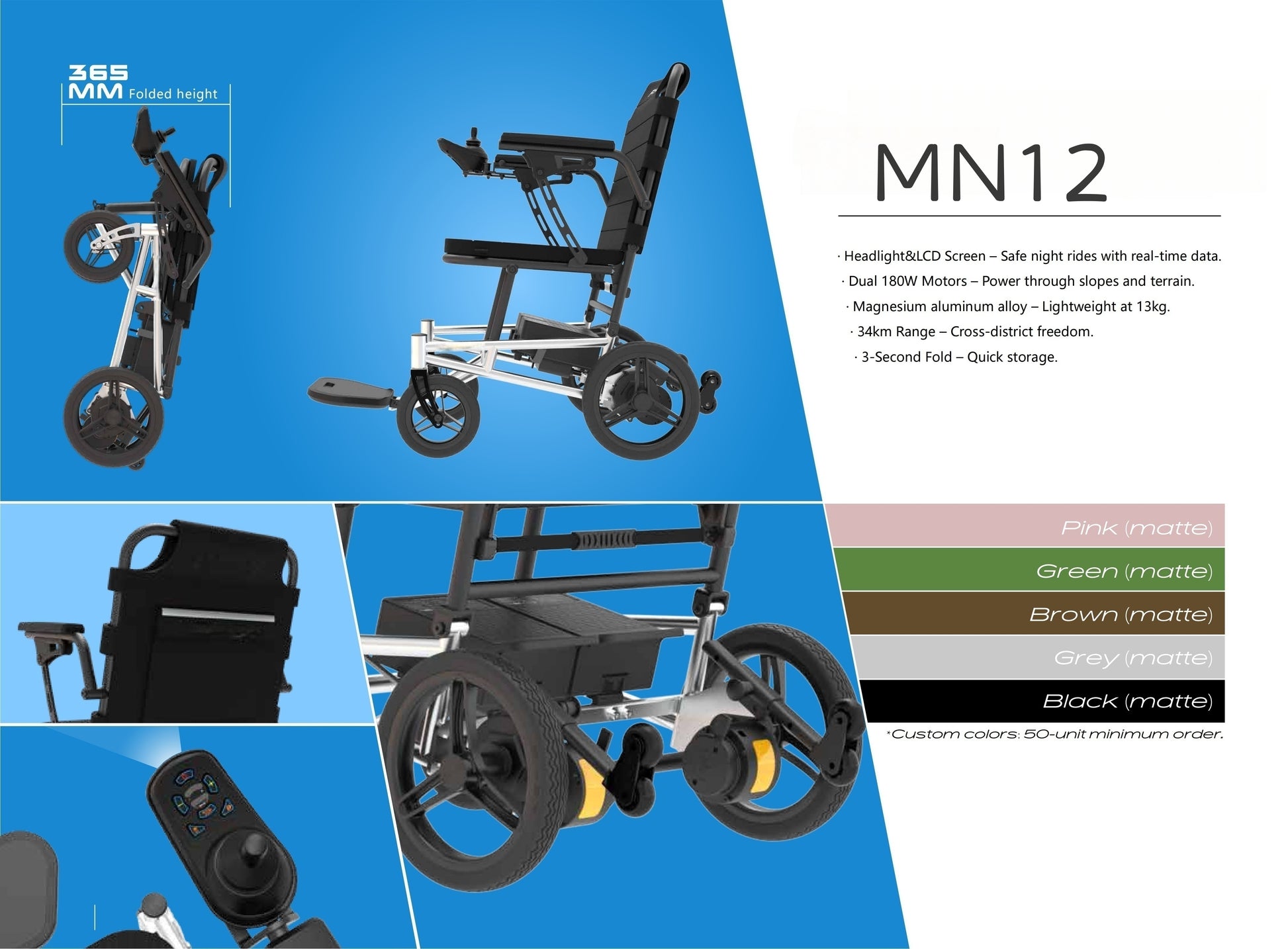 MN12 13KG Portable Ultra Light Foldable Lightweight Electric Mobility Wheelchair Outdoor Home for Air Travel